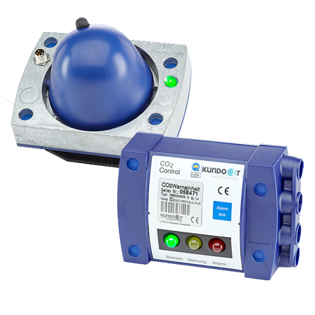 Het CO2 CONTROL gasalarmsysteem herkent en meldt iedere CO2 lekkage in gevaarlijke ruimten zoals bij CO2-tankopslag, bierkelders, produktie plaatsen, etc. Al jaren de standaard op gebied van CO2 detectie, is het Kundo XT – CO2 systeem nu ook verkrijgbaar met potentiaal vrije contacten. Het optisch 2 kanaals-meetprincipe berust op een selectieve infrarood absorbtie en is daarom, ook voor langere tijd, bijzonder stabiel, onderhoudsarm en is niet gevoelig voor de invloed van andere gassen. CO2 CONTROL is met 2 vast ingestelde alarmwaarden, vooralarm van 1,5 % CO2 en hoofalarm van 3,0 % CO2, uitgevoerd.
